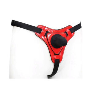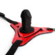 Don’t miss this strapon dildo including black penis and red straps, which was created for great fun in a colorful couple’s room.