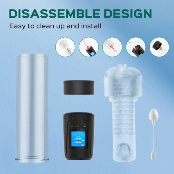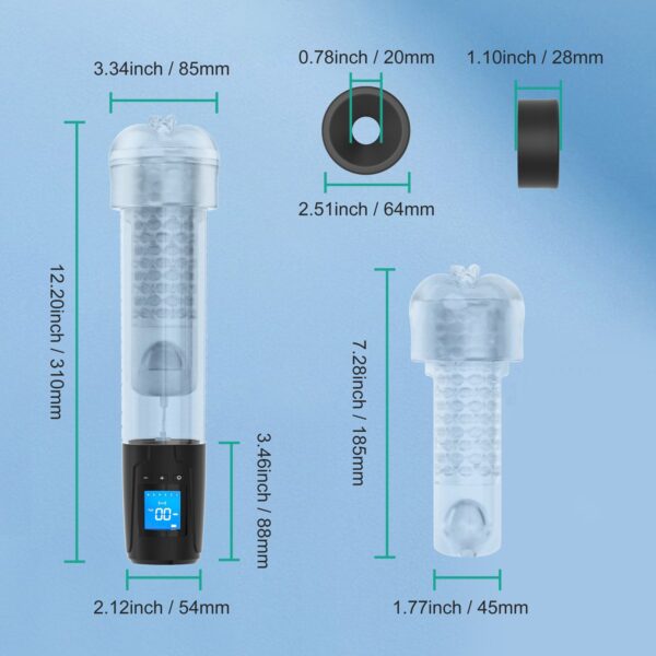 Nathan combines a penis pump and textured sleeve into one device, designed to enlarge and exercise the penis while simulating realistic oral sex stimulation. It offers 6 sucking modes and 8 pulsations of vibration for maximum pleasure. The versatile penis enlarger vibrating male masturbator features a customized elastic orifice, enabling it to accommodate most sizes, a transparent pump, and a screen for recording the air pressure datum. Explore your favorite pressure in penis exerciser with Nathan.