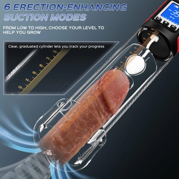Odin is an erection enhancer and a masturbator. Do you need anything else? It helps you build saying power, boosts your size, and delivers out-of-this-world pleasure! This automatic pump features a user-friendly graduated cylinder, an experience-tracking LED display screen, simple button control, great suction and vibration power, and a super-soft TPE inner sleeve to please your shaft and give you great orgasms.