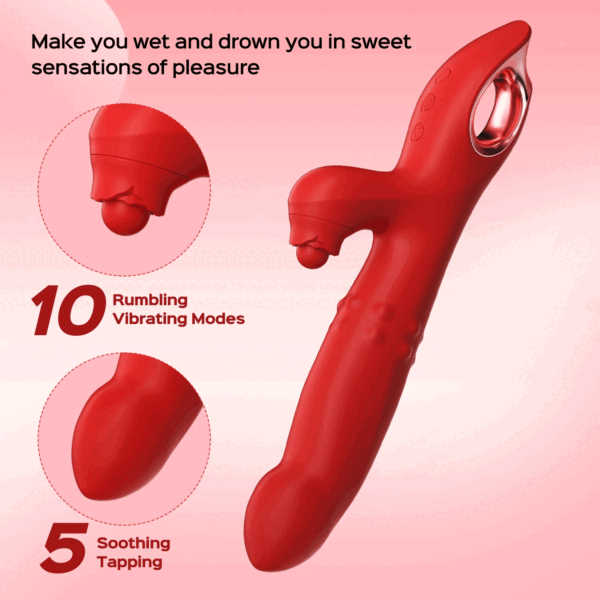 The ultimate trio of hot stimulation is here! Indulge in an overwhelming pleasure experience as this rabbit vibrator satisfies all your cravings with a relentless sliding beads ring, dynamic tapping, and exhilarating vibrations. By targeting your most sensitive erogenous zones, Bud promises to bring you blended orgasms every time.